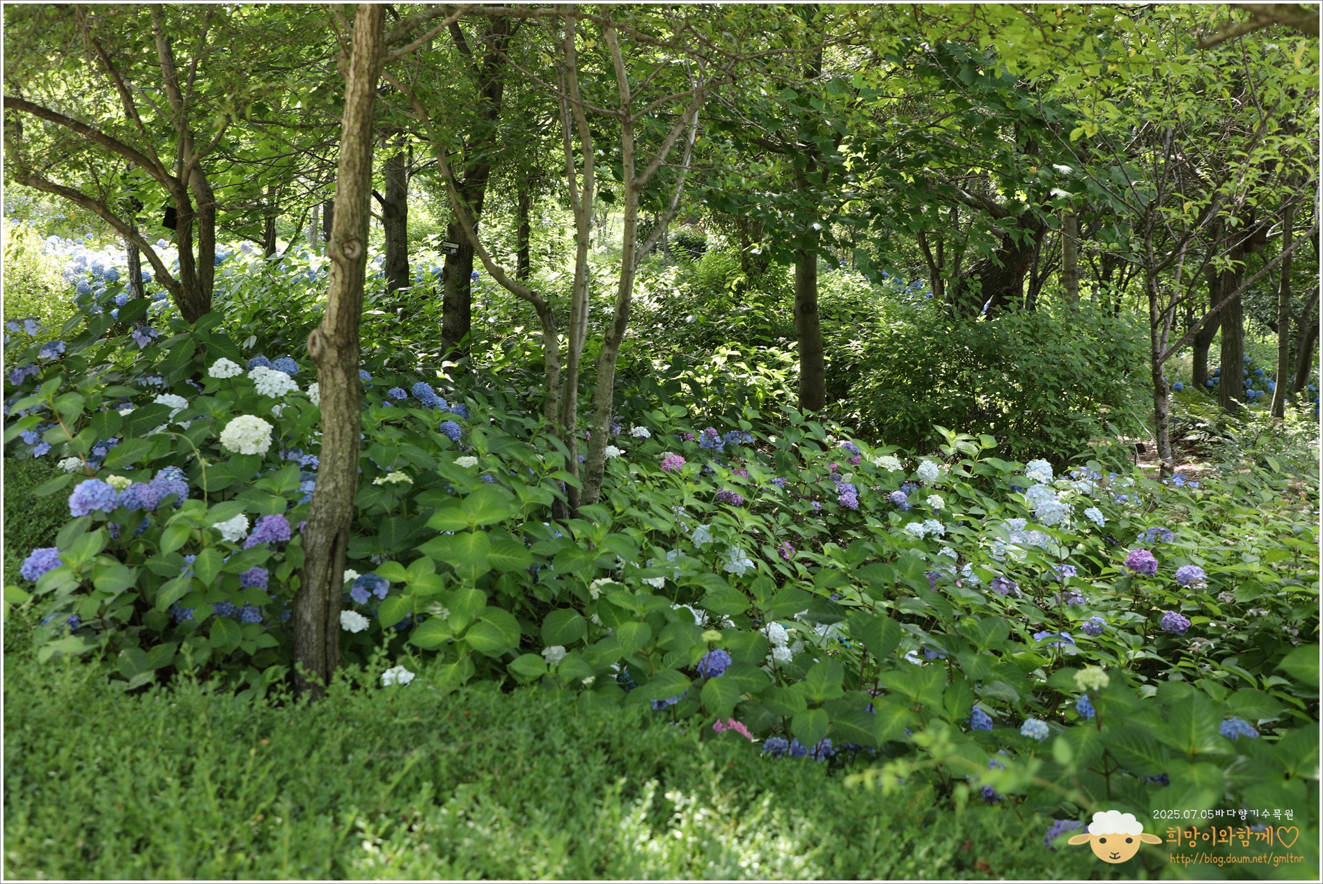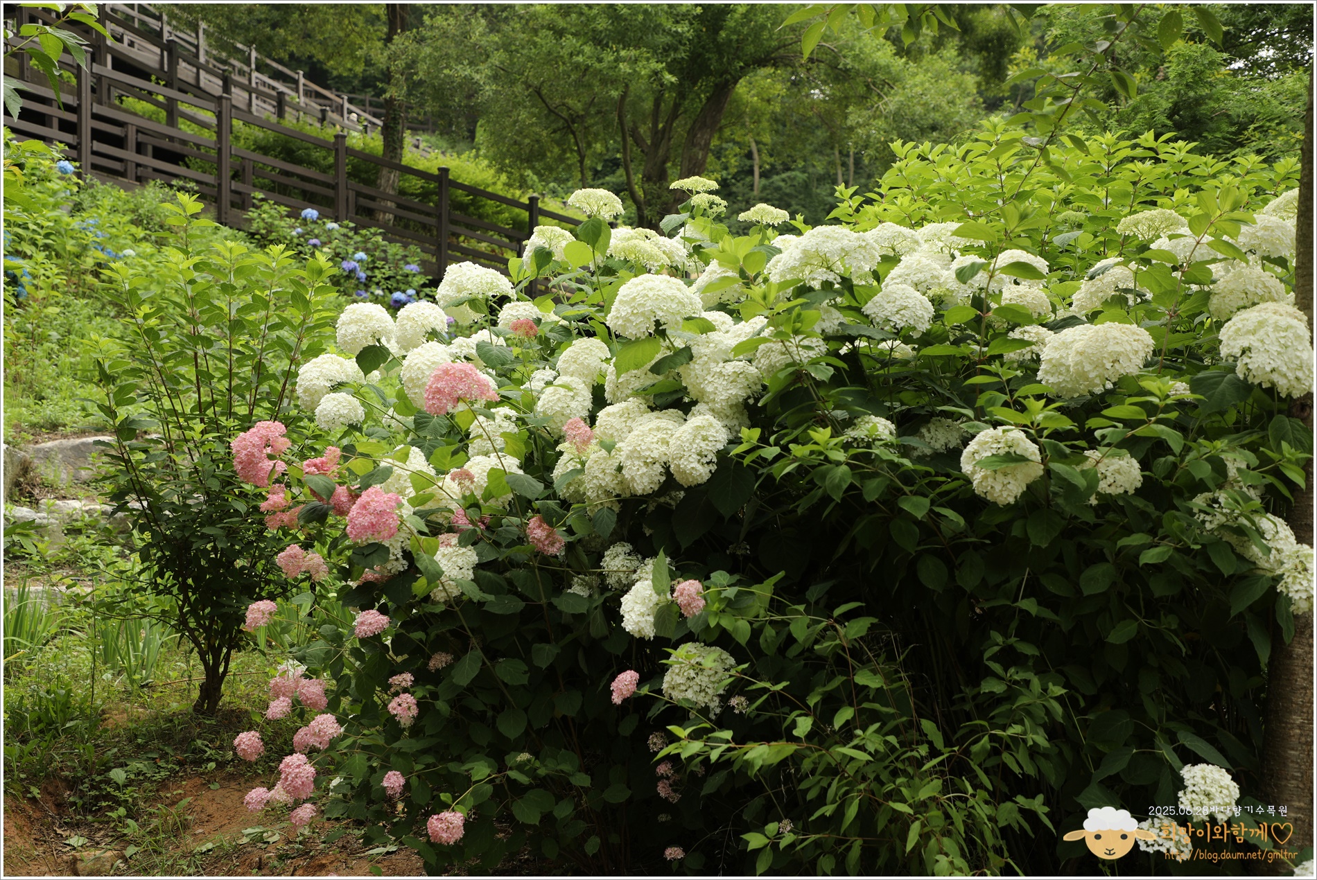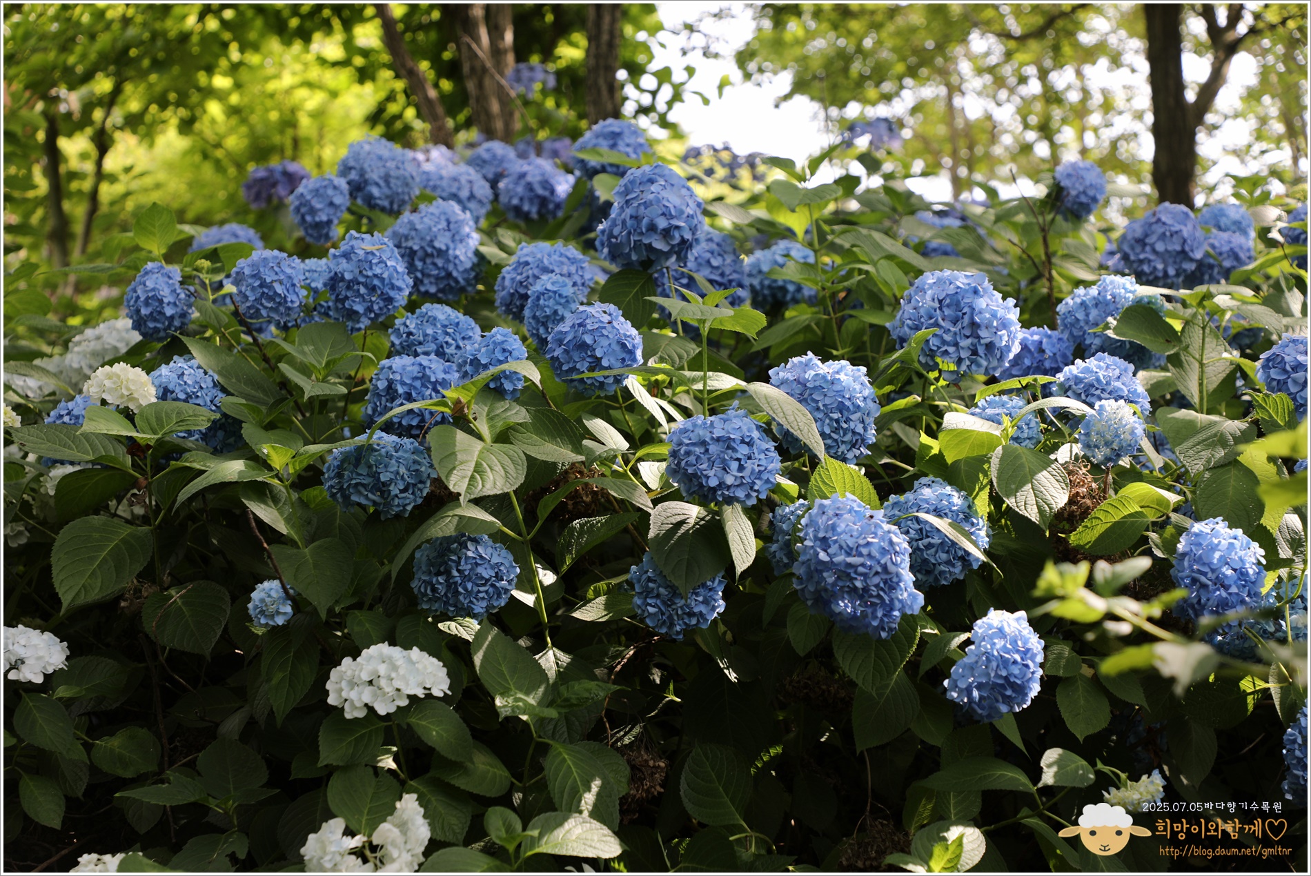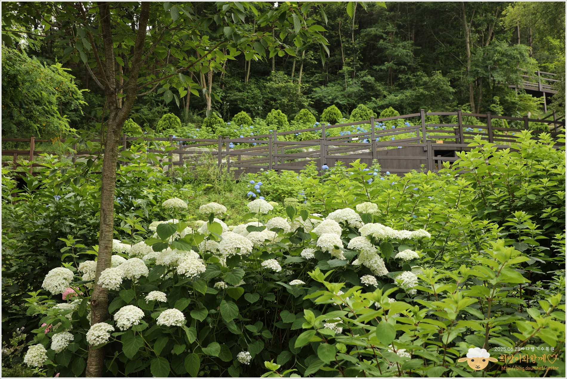 수국의 계절이다, 전국적으로 곳곳에 수국 명소가 눈길을 끌고 마음을 사로잡는데, 아! 나도 이곳저곳의 수국 명소를 전부 다녀보고싶은 마음 한가득이다~, 그런데 주말 말고는 꼼짝을 할 수 없는데다 주말에는 토요일 하루만, 일요일에는 교회 출석을 해야하니... 바다향기 수목원의 수국을 본다
